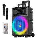 Entrada universal auxiliar de micrófono para función karaoke. (Con 2 micrófonos inalámbricos incluídos).