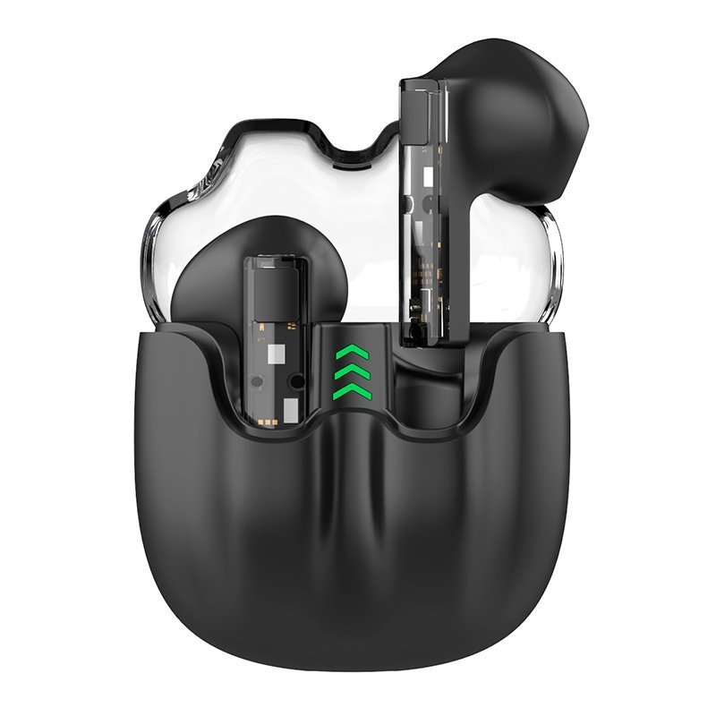 Auriculares estéreo Bluetooth para escuchar música y hablar por teléfono gracias a su conexión bluetooth. Novedoso diseño compacto, con acabados transparentes para ver los circuitos interiores.