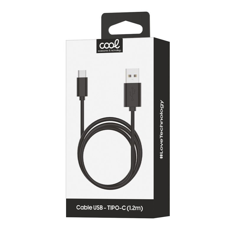 Cable USB Compatible COOL Universal TIPO-C (1.2 metros) Negro 2.4 Amp
