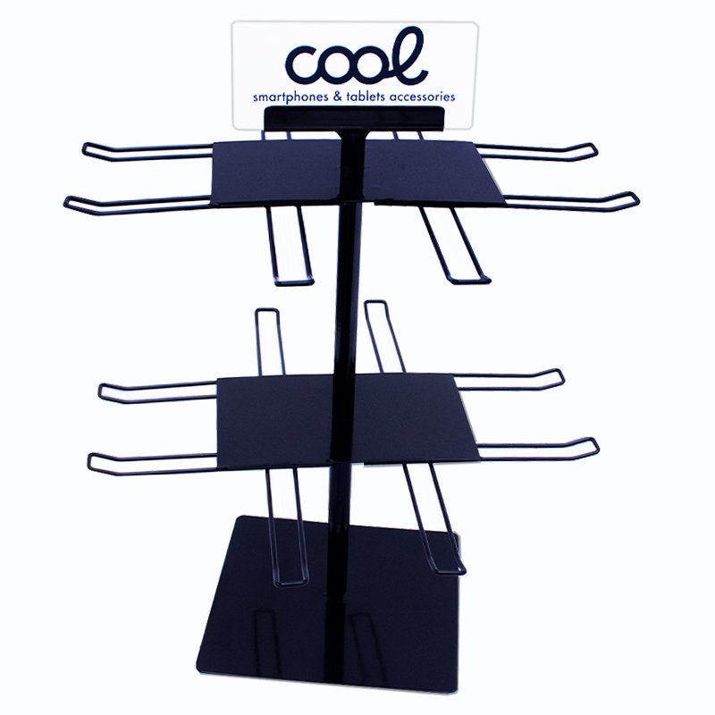 Especialmente diseñado para ofrecer un atractivo efecto visual que atraiga la atencion de sus clientes a los productos del expositor. Incorpora 16 ganchos dobles para colgar productos. Sus medidas son 55 cm de alto x 48 cm de ancho. Puede exponer unos 100 productos Color: Negro.