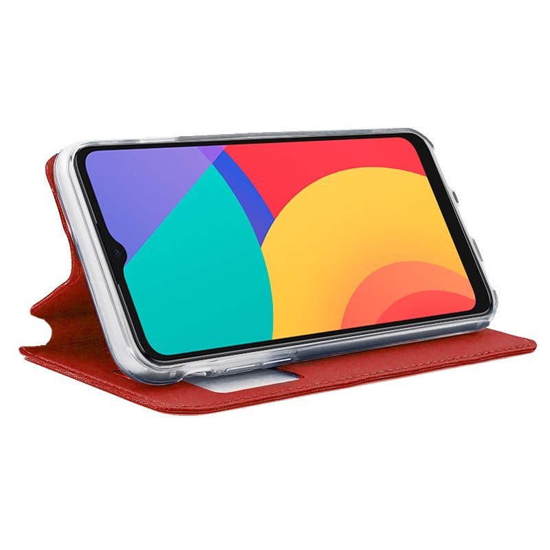 Apertura lateral tipo libro. Incorpora una carcasa específica del modelo de smartphone, para incrustarlo y dejarlo perfectamente encajado.