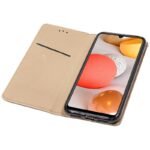 Apertura lateral tipo libro. Incorpora una carcasa específica del modelo de smartphone, para incrustarlo y dejarlo perfectamente encajado.