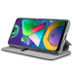 Apertura lateral tipo libro. Incorpora una carcasa específica del modelo de smartphone, para incrustarlo y dejarlo perfectamente encajado.