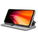 Apertura lateral tipo libro. Incorpora una carcasa específica del modelo de smartphone, para incrustarlo y dejarlo perfectamente encajado.